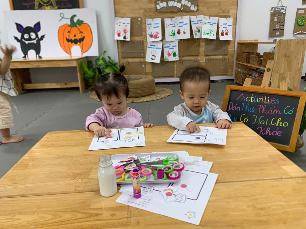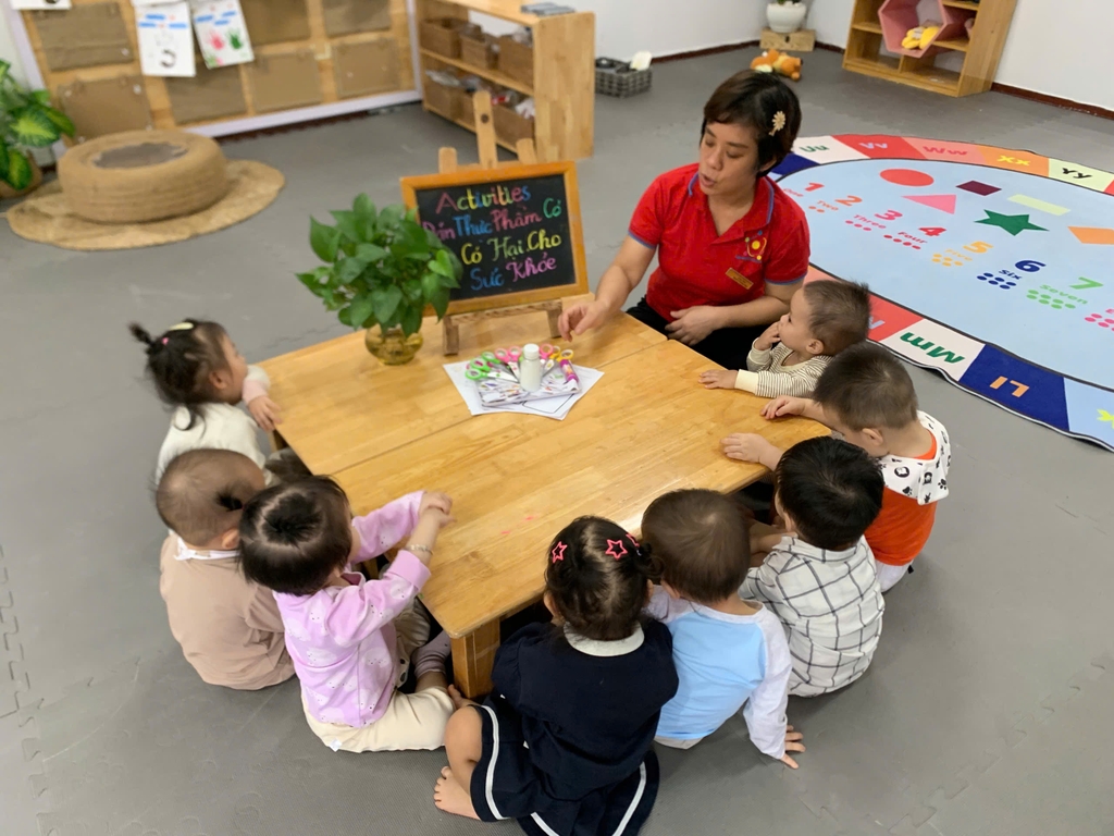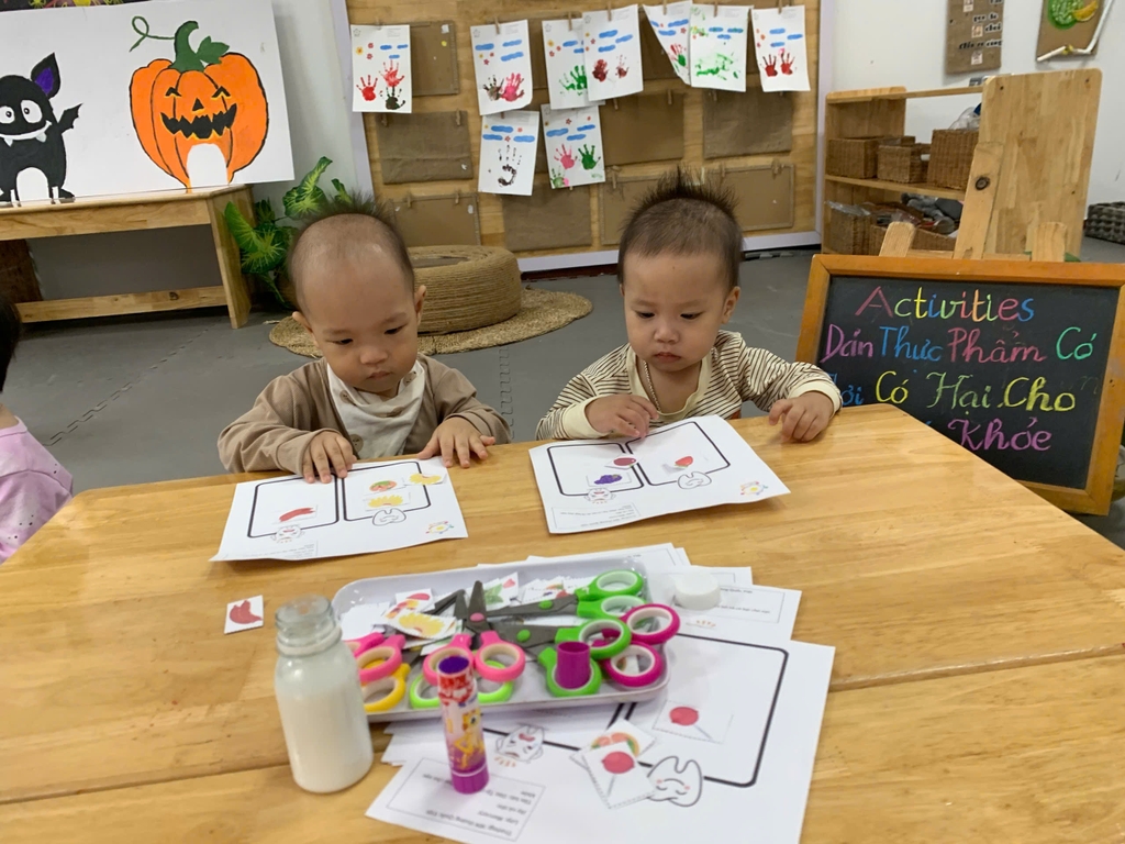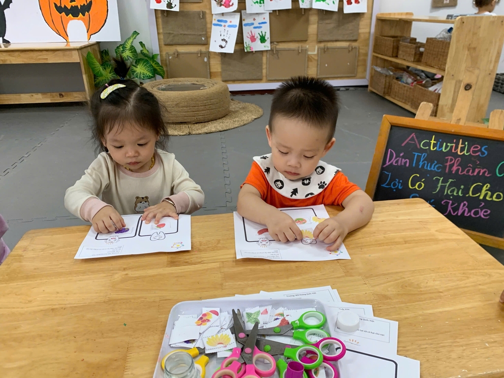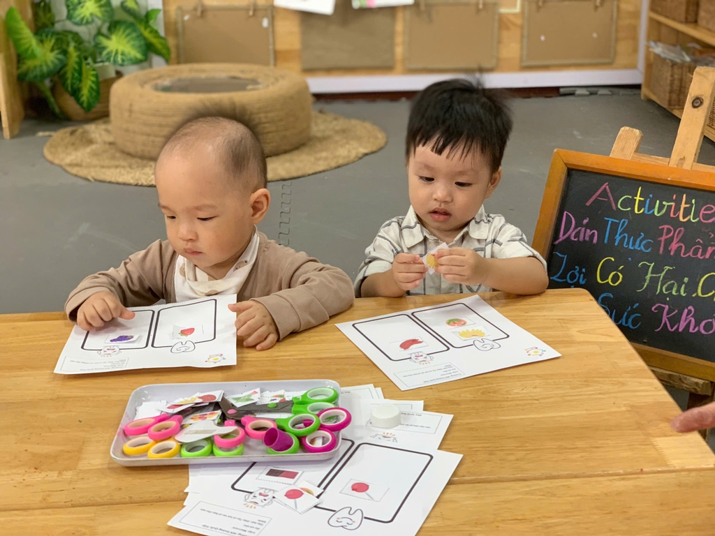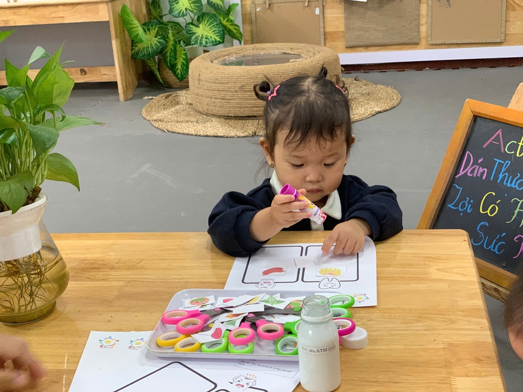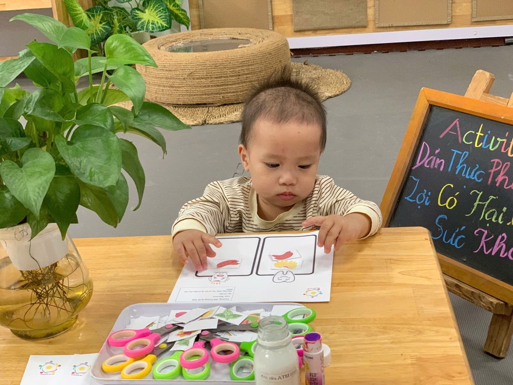 Trong dự án “All About Me”, các bạn nhỏ lớp mer đã có một hoạt động vô cùng thú vị – dán phân loại thực phẩm có lợi và có hại.