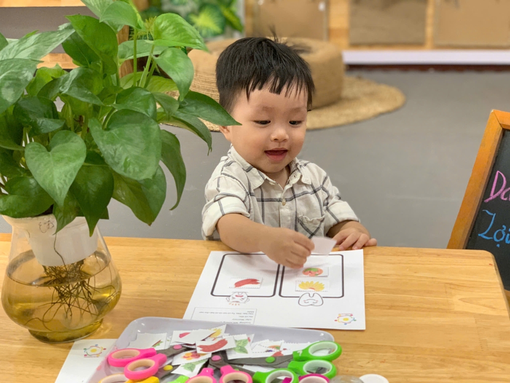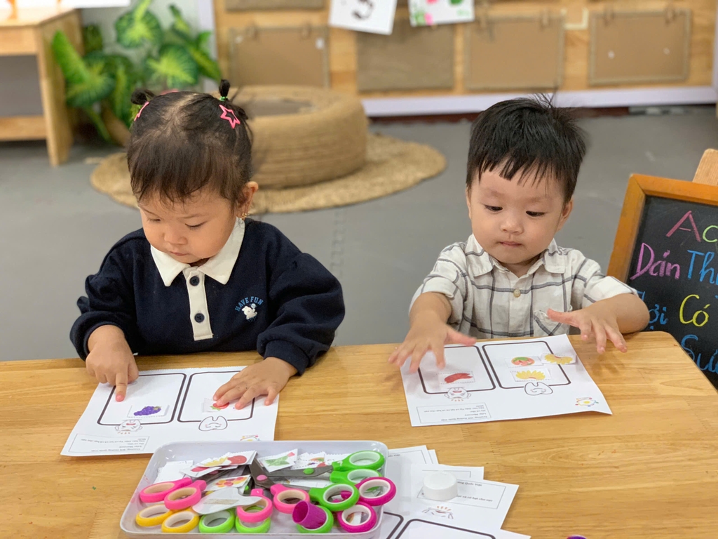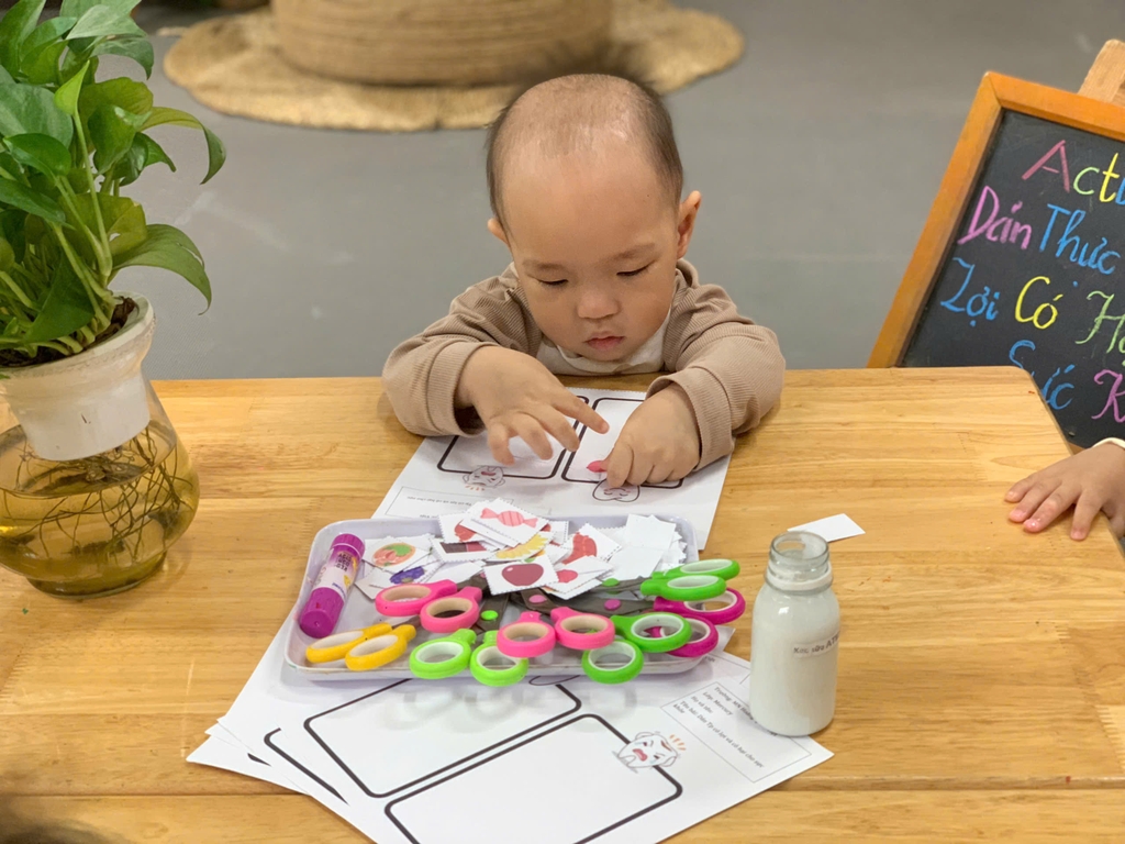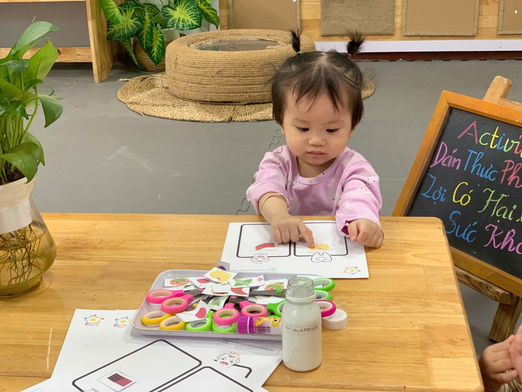 Từng đôi bàn tay nhỏ xíu tỉ mỉ chọn những loại thực phâme học cách phân loại nhận biết những thực phẩm tốt cho cơ thể.